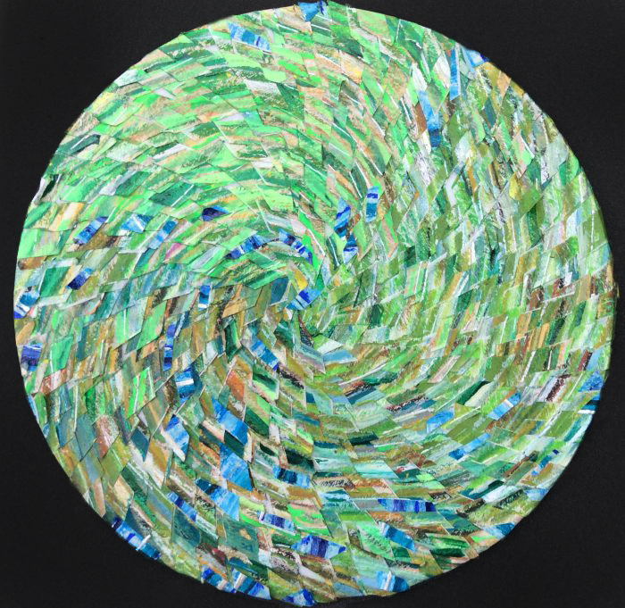 Green Man Tondo, acrylic on card